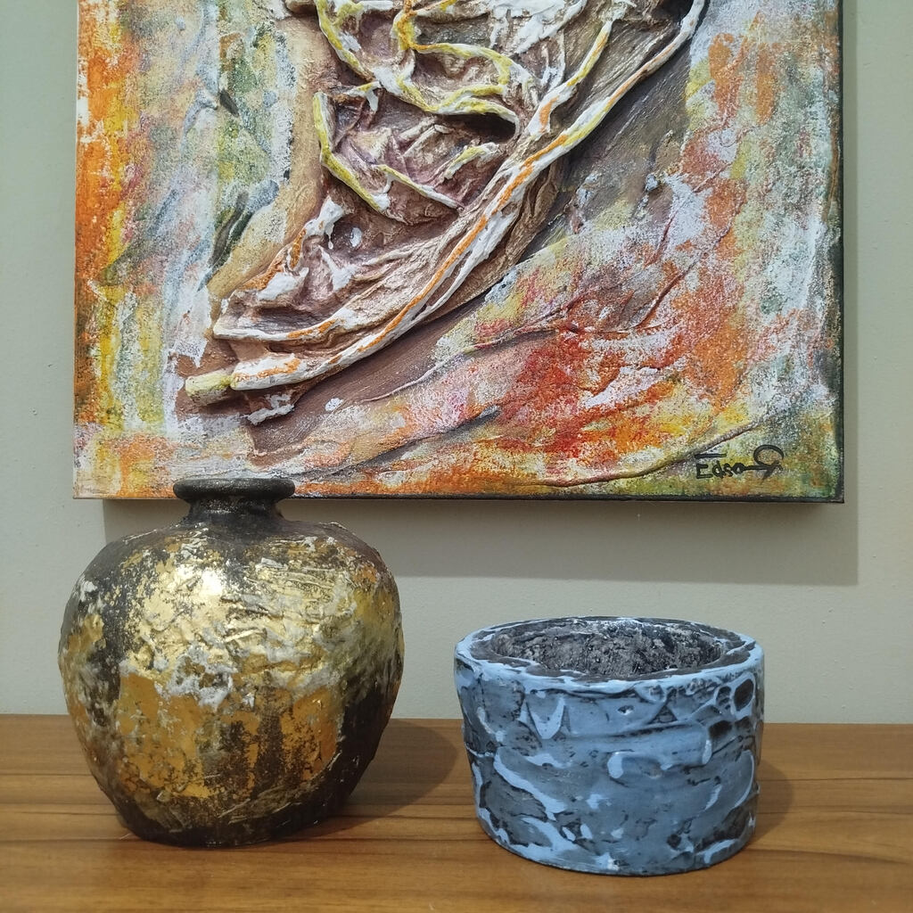 **Vaso Esther em Relevo – Cimento com Textura Azul e Preta**